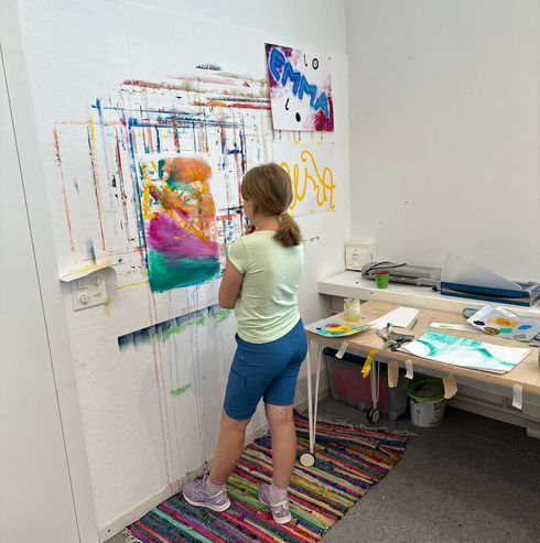 Der einladende Rahmen, in dem die Kinder ein individuelles Namensbild gestalten und ein Grossformat-Bild malen durften, wirkte inspirierend. Die Stille im Atelier zeugte von konzentrierter Arbeit. Bei der Werkschau hatten alle die Gelegenheit, ihre Werke den anderen zu präsentieren, was viel Mut erforderte. Die wertschätzende Betrachtung und die wohlwollenden Rückmeldungen ermöglichten den Malenden eine neue Erfahrung, indem sie ihre Werke ohne Angst vor Kritik zeigen konnten. All diese Momente waren eine grosse Bereicherung für uns alle.